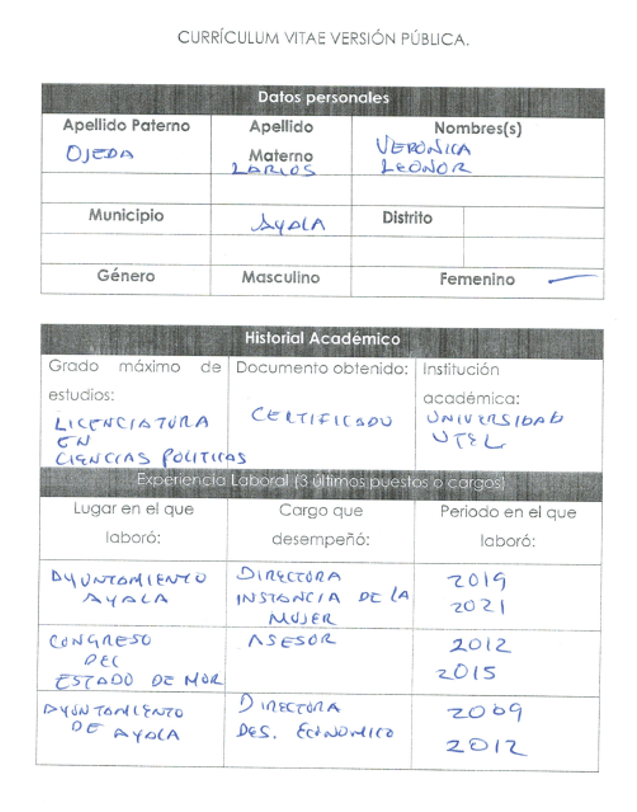 1er regidor: VERONICA LEONOR OJEDA LARIO